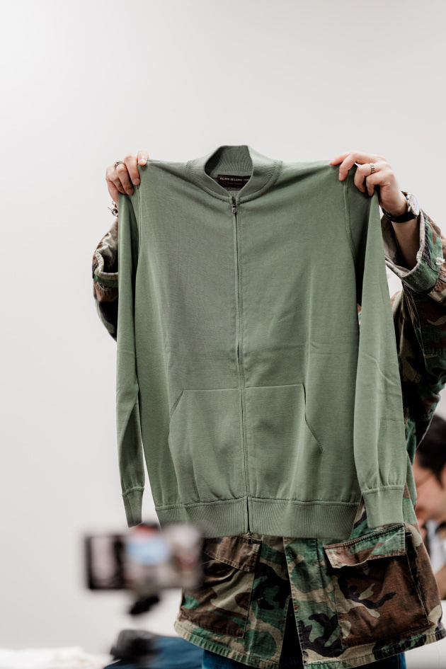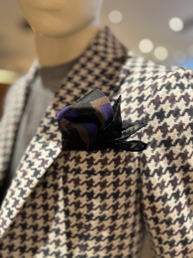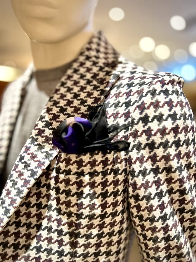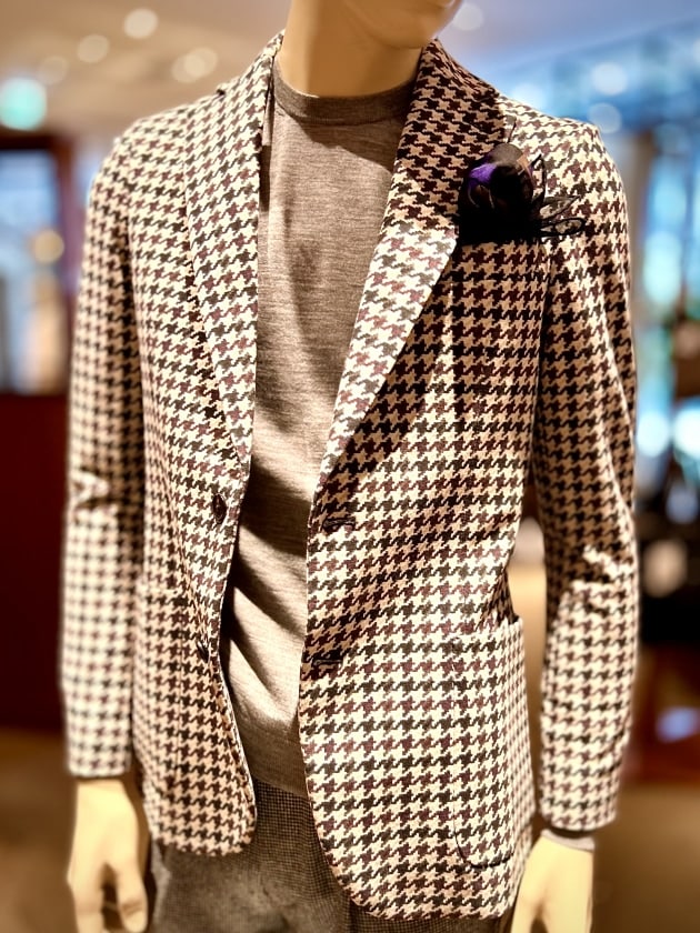 デザインだけでなくシルクのような光沢があり、しなやかで柔らかい肌触り。そして優れた耐久性も兼ね備えているという<FILIPPO DE LAURENTIIS>の真髄もしっかり感じられる1着です。