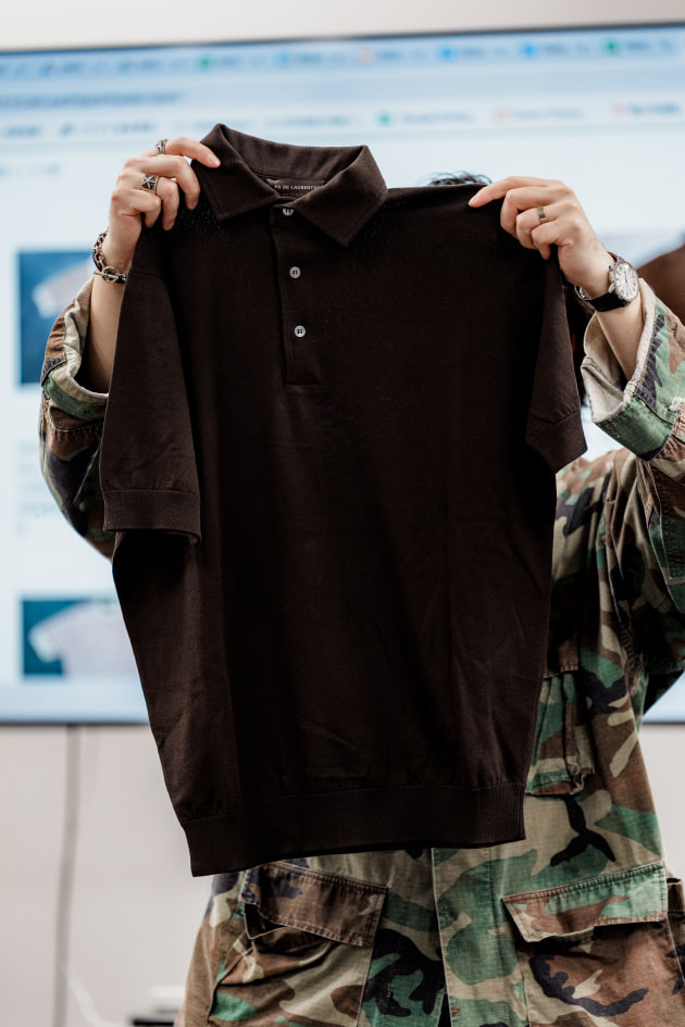 こちらはその濃いニットポロです。どこが、という記載はないですが、おそらく上記のモデルとは形が違うかと思います。