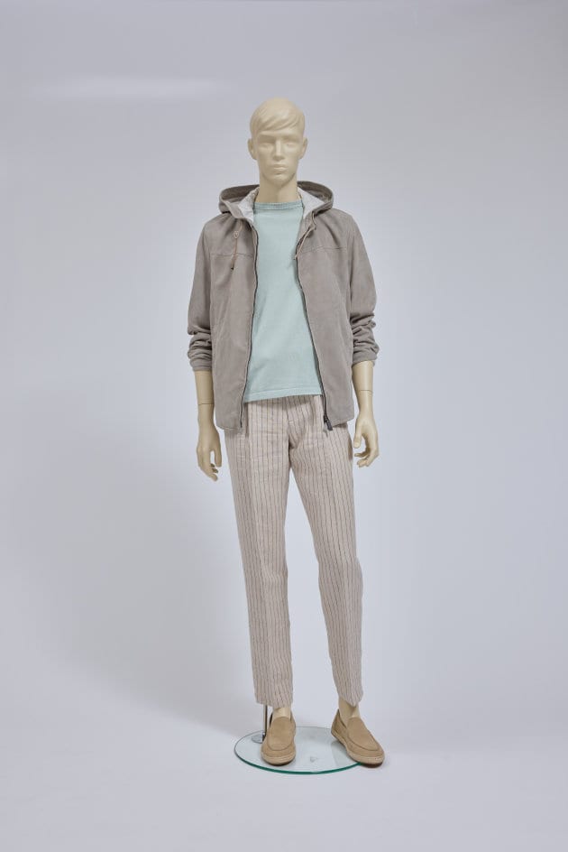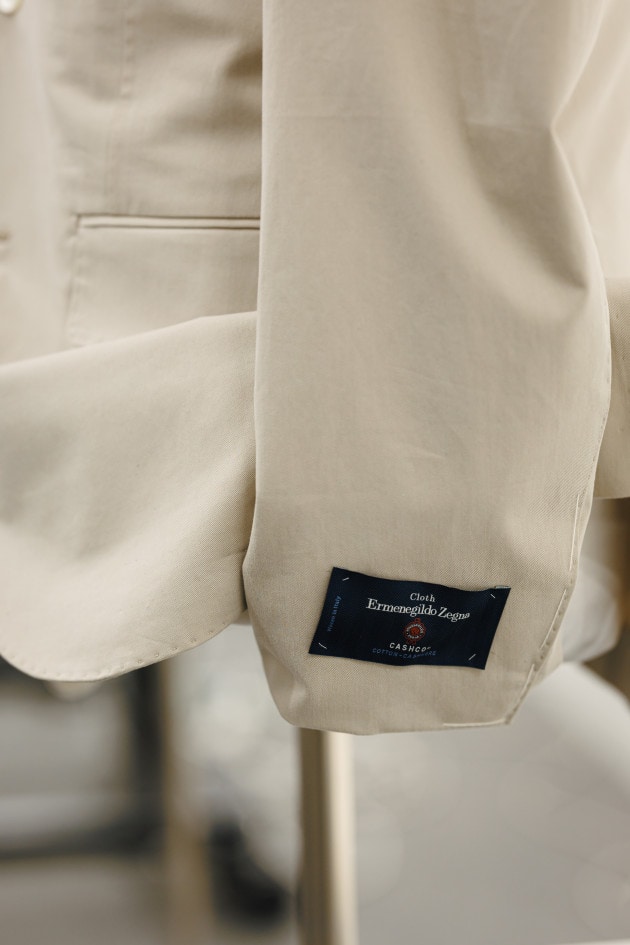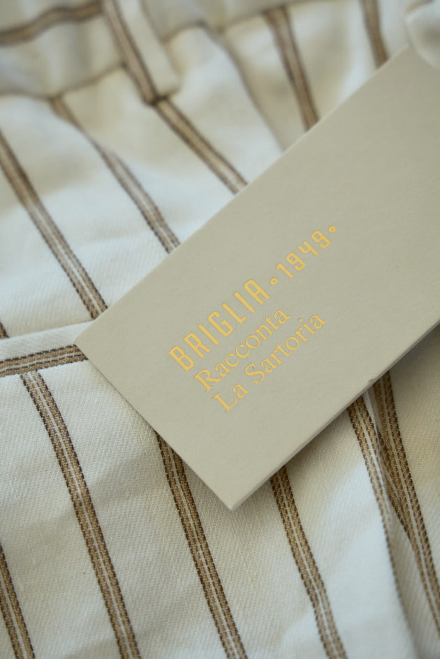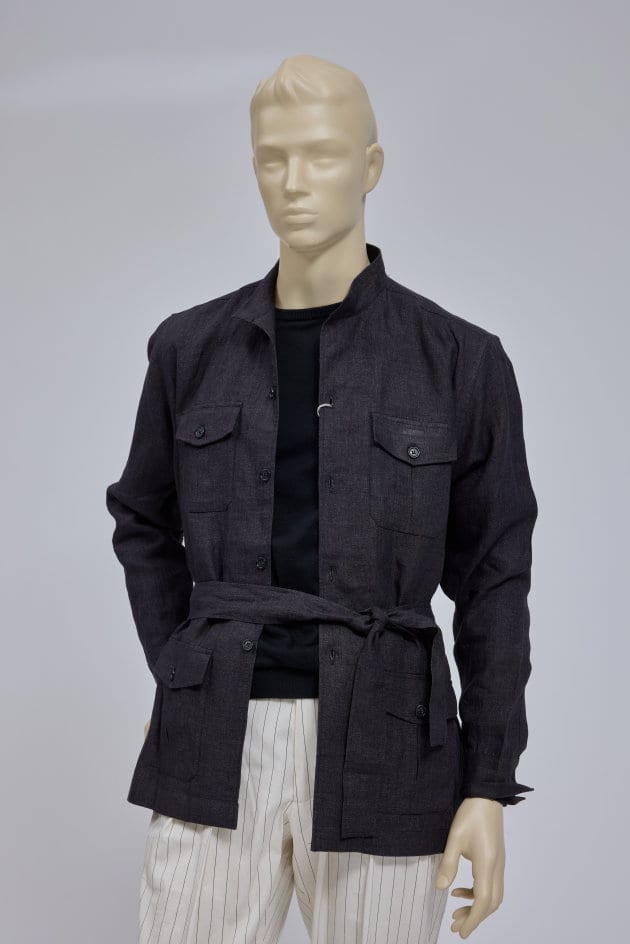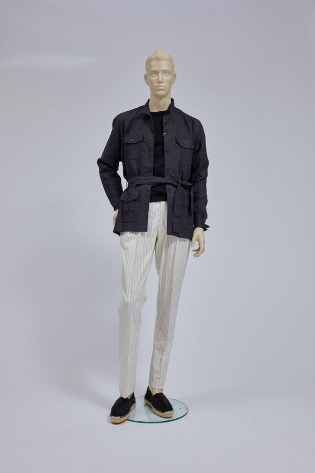 「ブランドの定番モデルであるラウンジシャツ。ジェットセッターが仕事や移動の合間にラウンジで寛ぐシチュエーションなどを想定してデザインされた一着です」