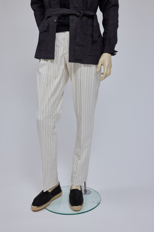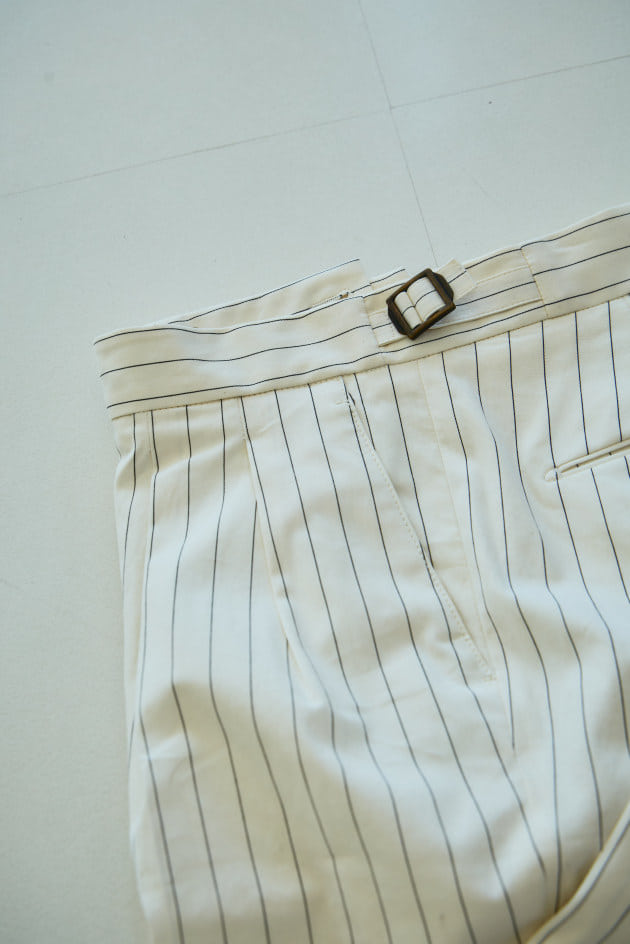 「マルチストライプのセットアップ。このストライプも80年代から90年代前半頃に流行したマルチストライプをイメージして作っています」