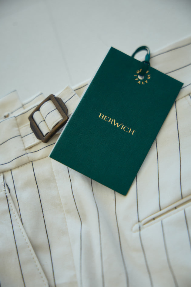 「ブランドの得意とするジェットセッターに向けたカジュアルセットアップをベースに、シルエットをビームス仕様に変更した別注アイテム」