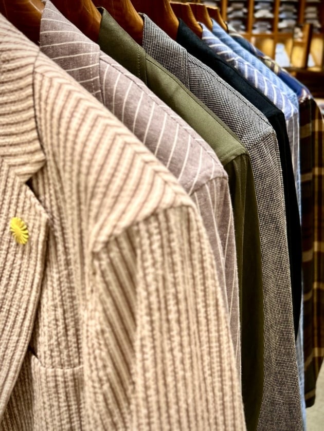 シアサッカーはもともと生地に凹凸があり、肌への設置面が少なく快適な上にシワが気になりませんので取り扱いも気を使いません。