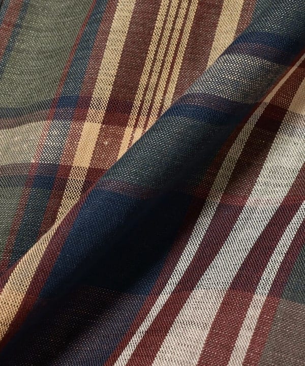 もう一着はオフベージュベースに同系色の柄が配されていますが、民族調を思わせる特徴のあるストライプが目を惹きます。
