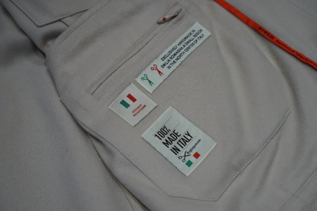 ウールライクですが、表地は<MONTECORE>オリジナル素材の<AERO TWILL>。ポリエステル91%、ポリウレタン9%ので構成されたストレッチ性を利かしたテクニカルな生地。機能性と外観の品の良さを高次元で表現しています。