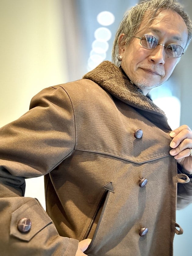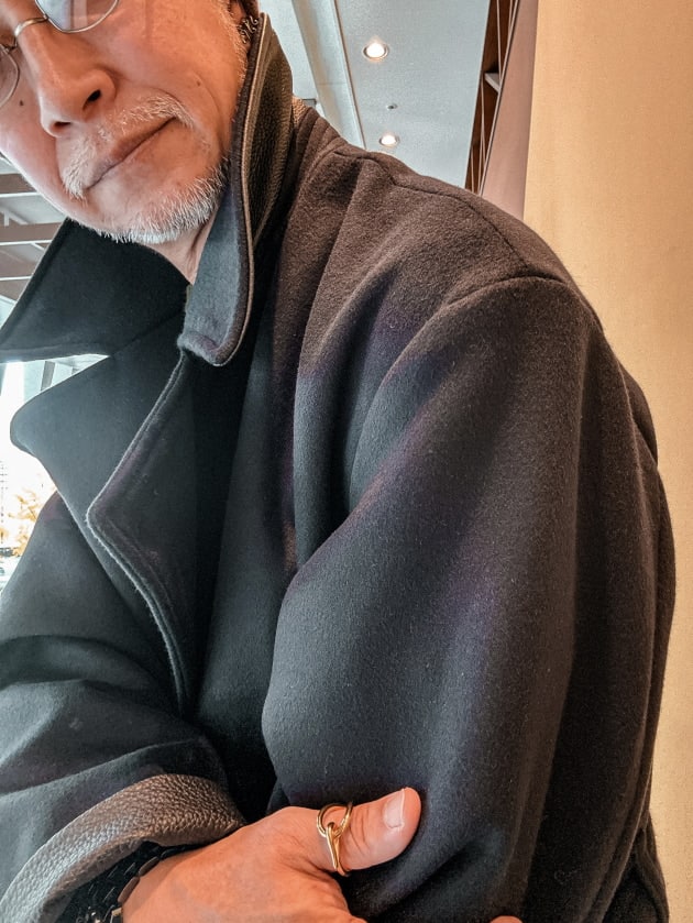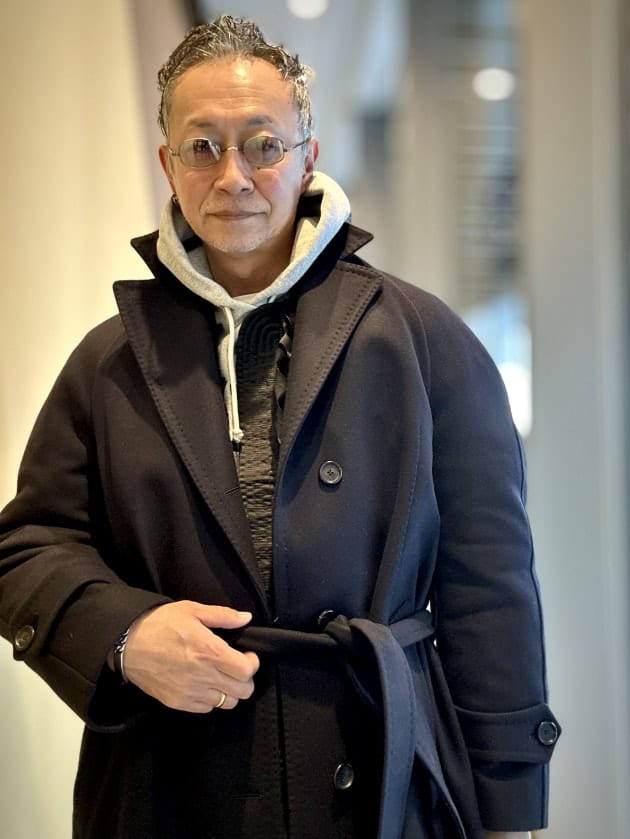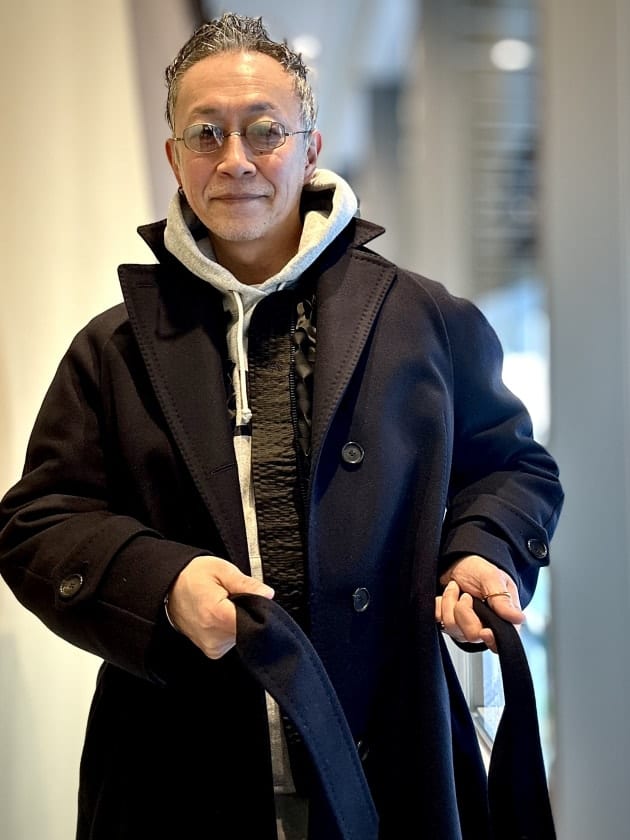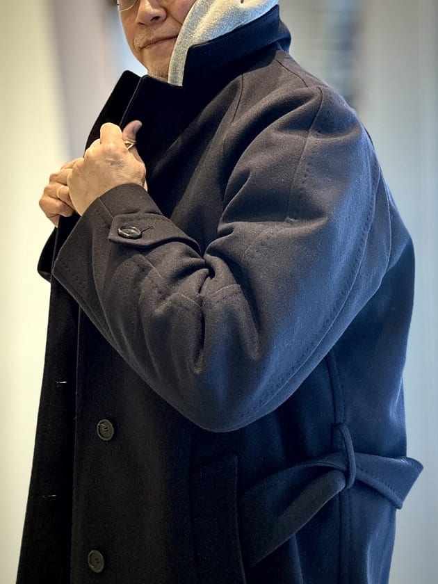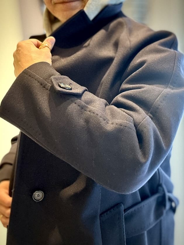 【AUBERGE】小林学氏の所有するアーカイブモデルを参考に、日本を代表するコート専業工場で作られた渾身のトレンチコート。生地用尺を贅沢に一枚袖で仕上げられております。