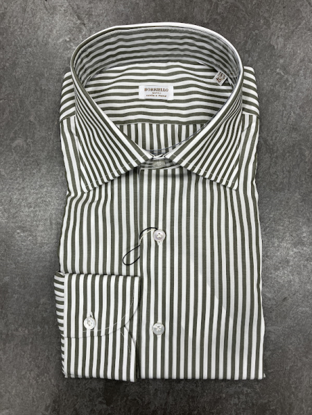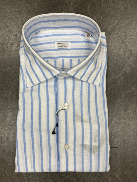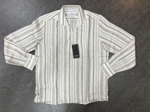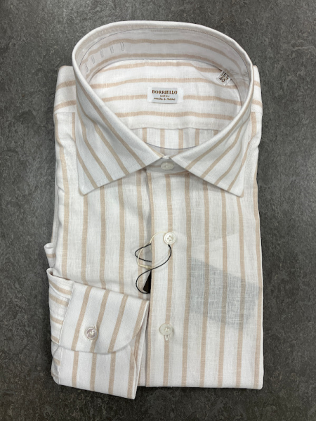 BORRIELLO コットンリネンブラウンストライプシャツ