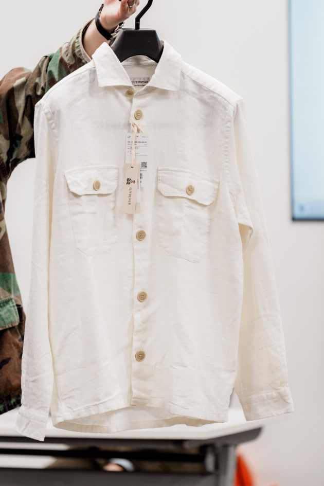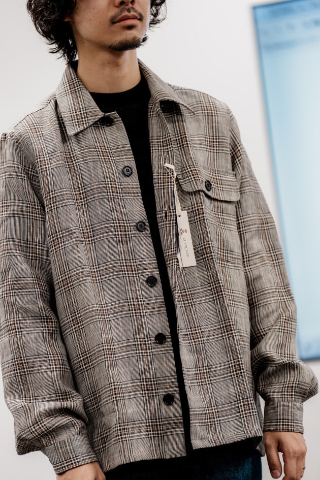 麻×ビスコースのしなやかな素材感が特徴で、重ね着にも適したデザイン。ミリタリーやワークシャツをベースにしつつ、<GUY ROVER>らしい上品な印象に仕上がりになっており、Tシャツの上に羽織るアウター的な使い方から、カジュアルジャケットのインナー使いまで幅広く活躍が見込まれます。