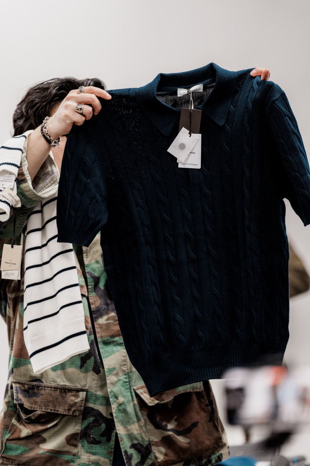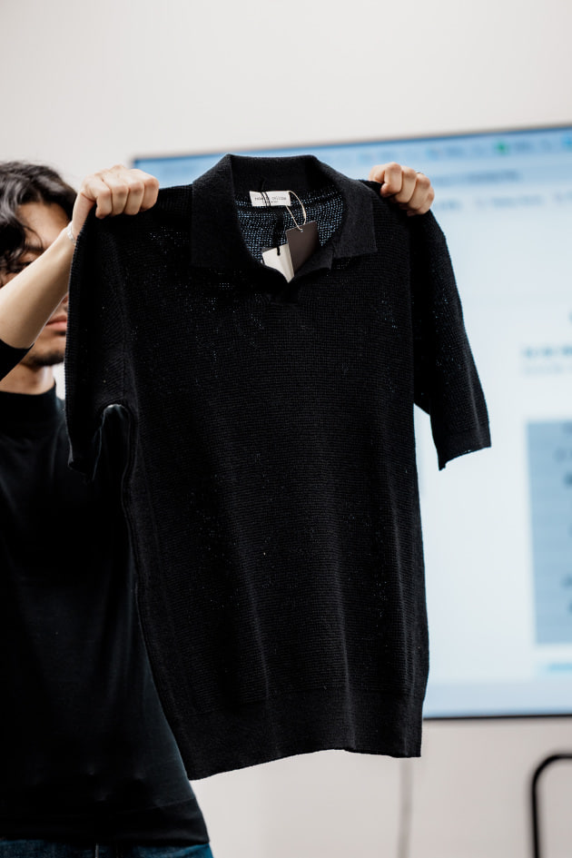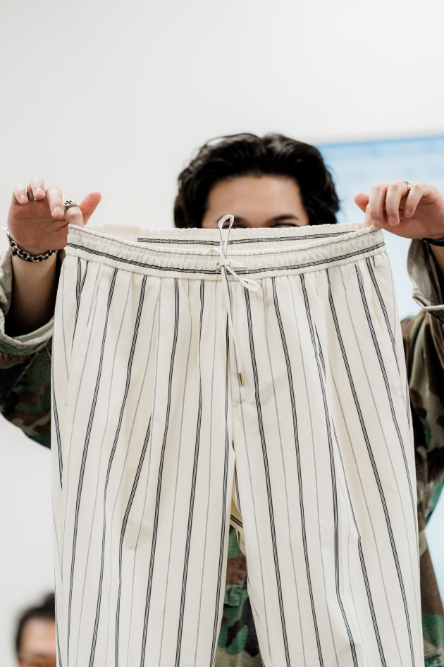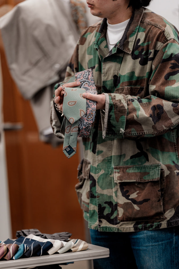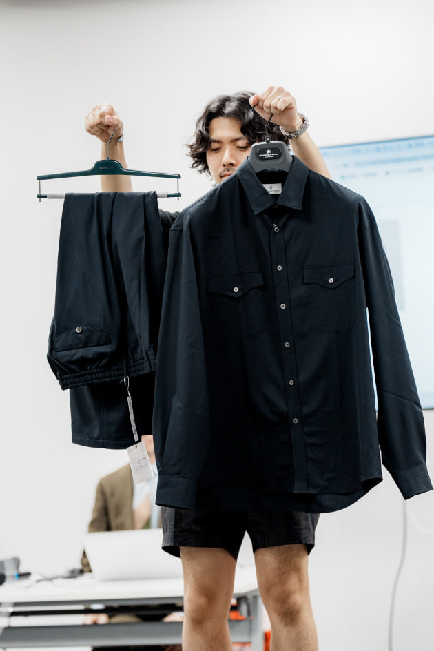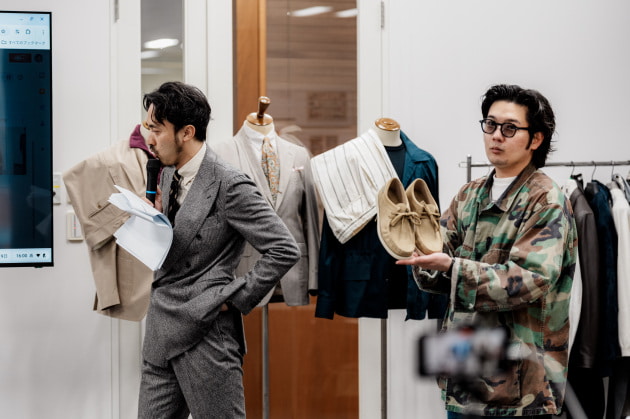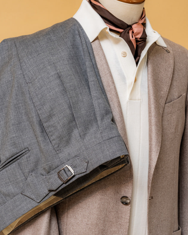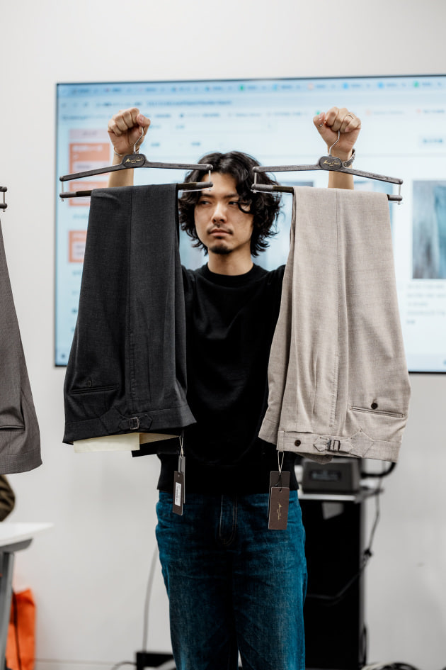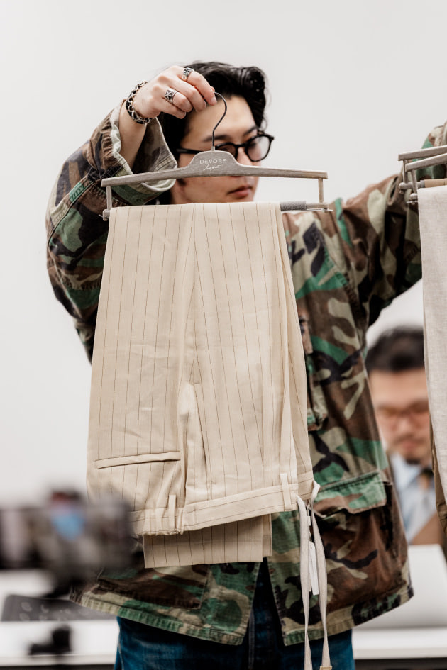 こちらも今回はサンプルなしですが、襟型(ワイドカラー)とボディフロント、カフスデザインの組み合わせを別注したBEAMSエクスクルーシブ仕様を今シーズンもご用意。既存の襟型とボディをベースにしながら、ボディ寸法にわずかなゆとりを持たせることで、スリムすぎない、今の気分に合ったバランスに仕上げています。ナポリシャツらしい色気はそのままに、より自然体で着られる一着です。