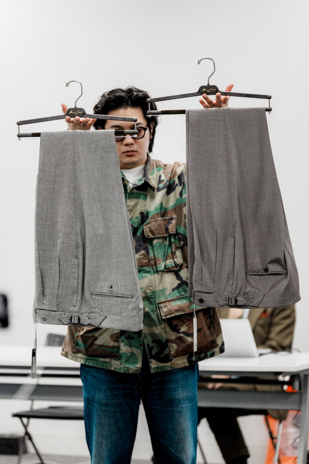 ポケットのプリーツを省いたシンプルな別注仕様で継続しております。