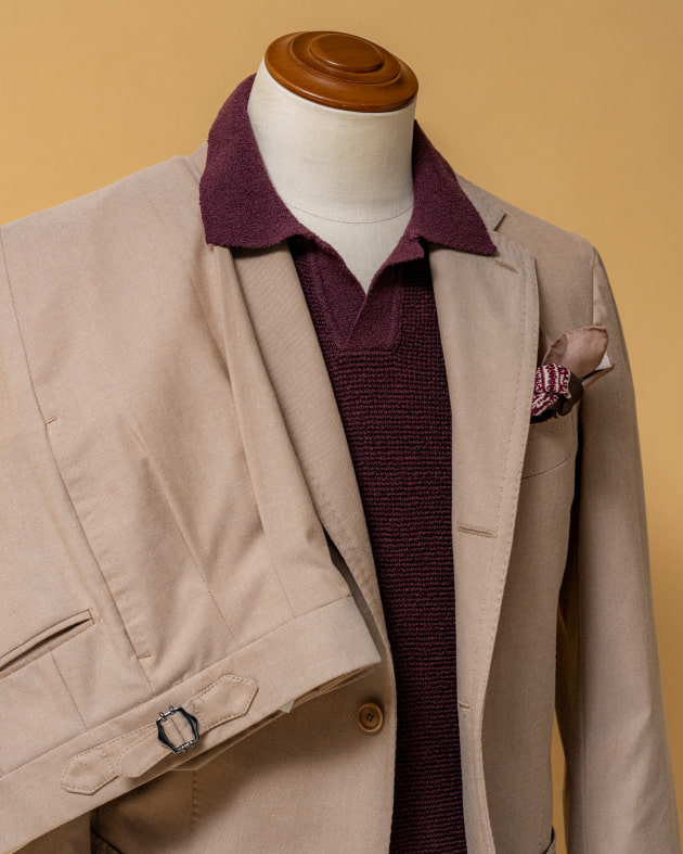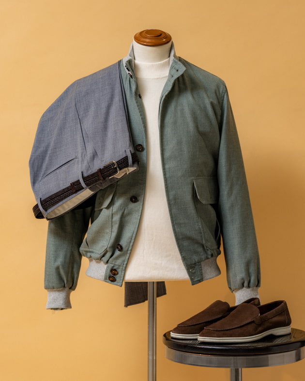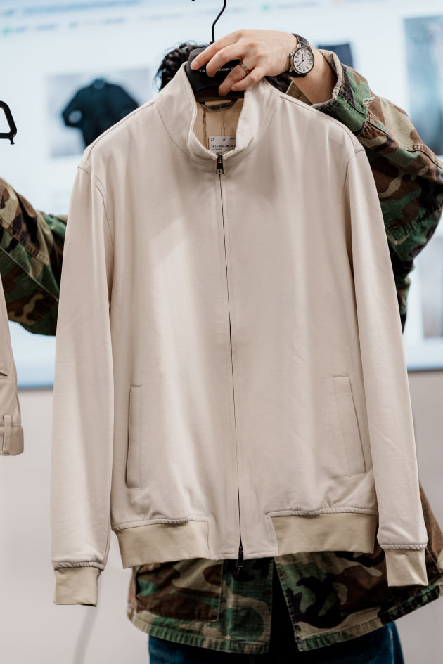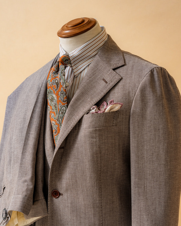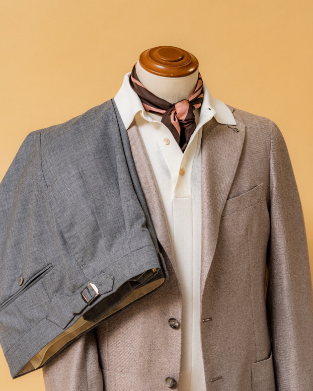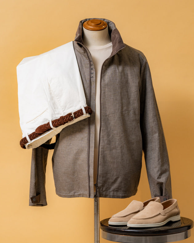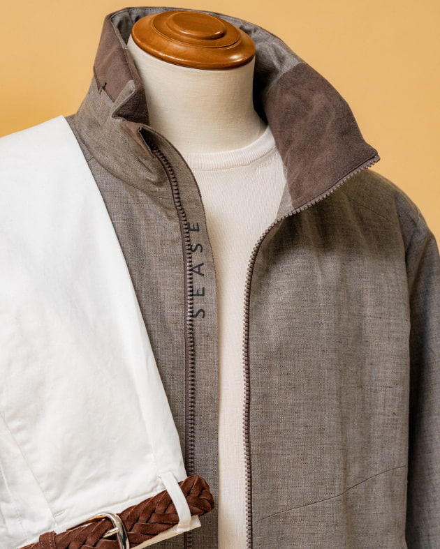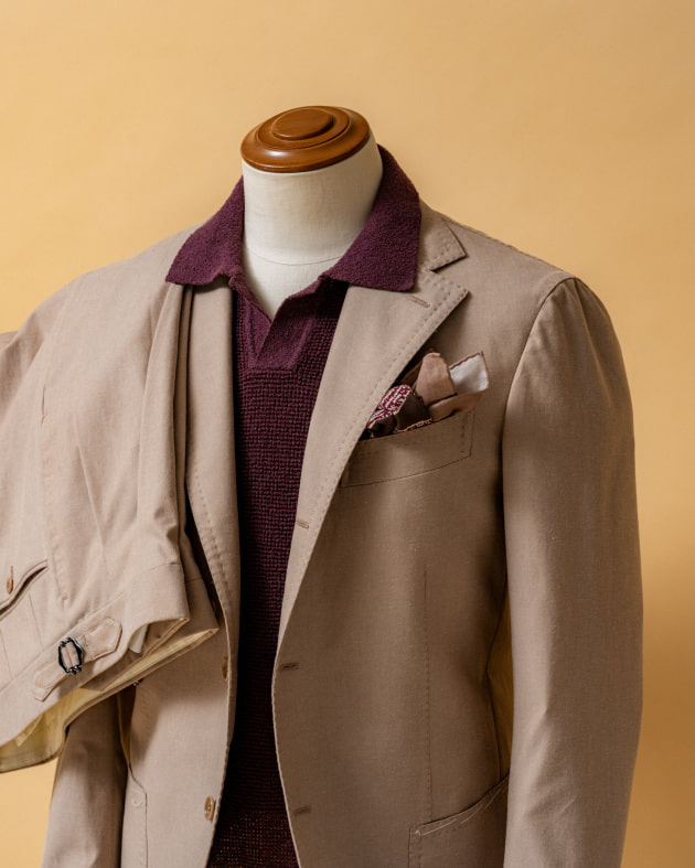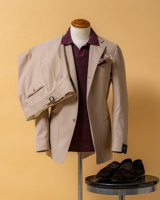 これまで展開してきたベージュよりもトーンが濃く、非常に洒落たカラーリングで軽い生地感のため重たく見えず、春夏にも最適。
