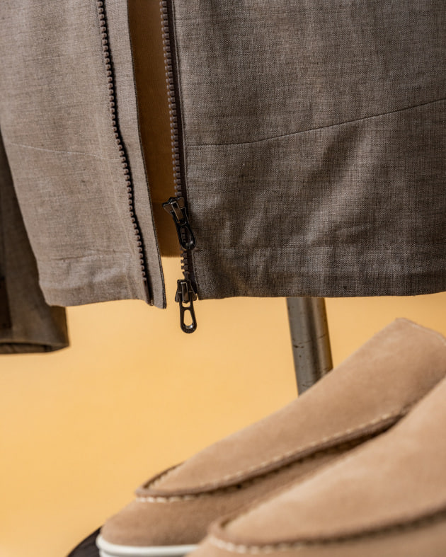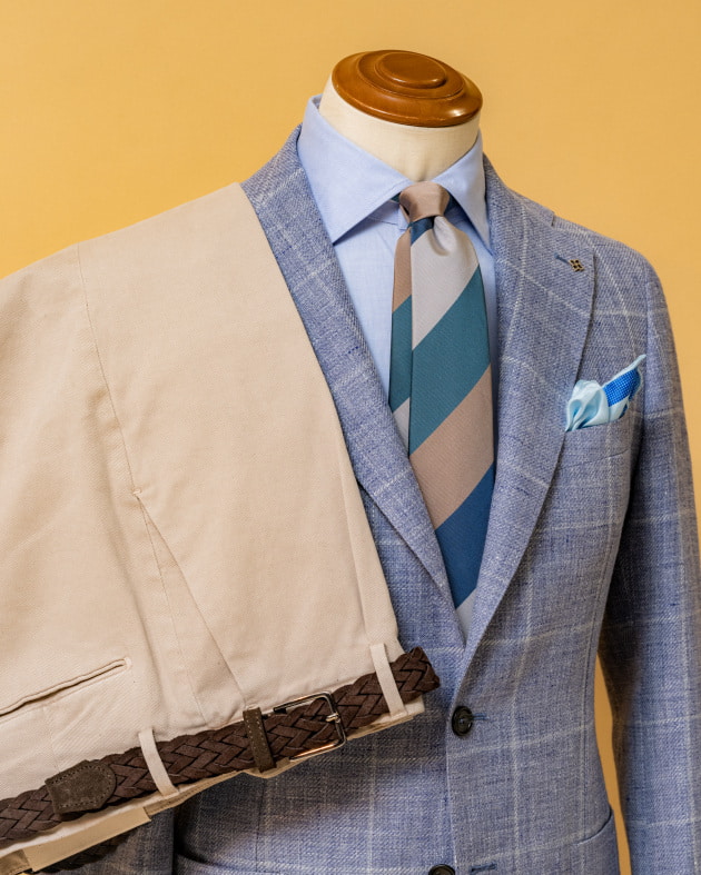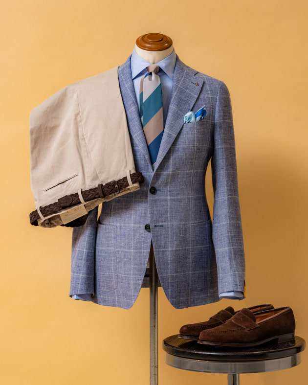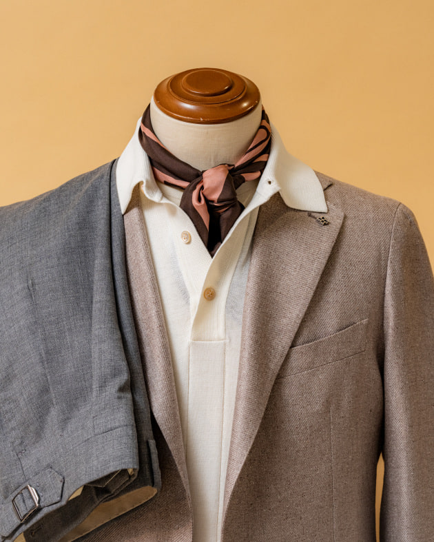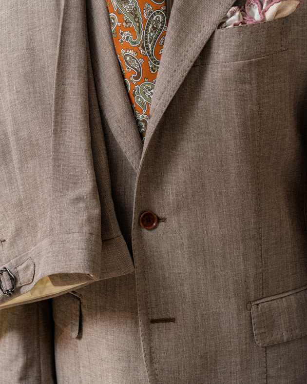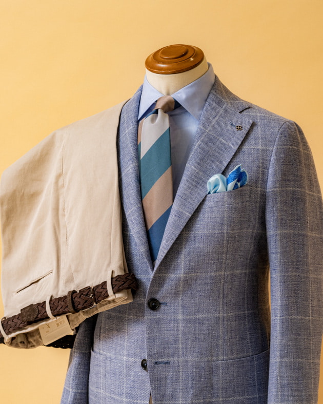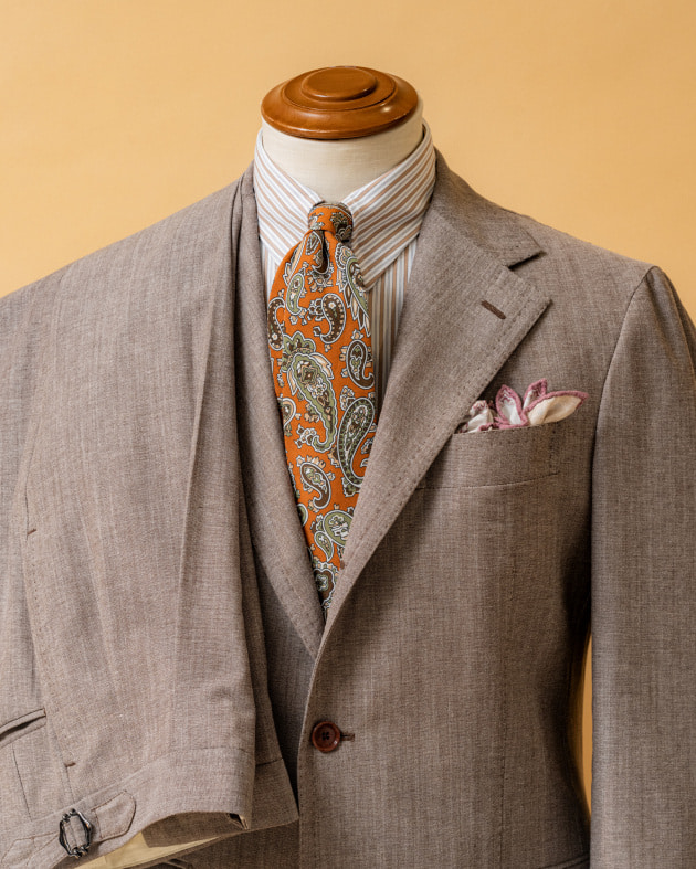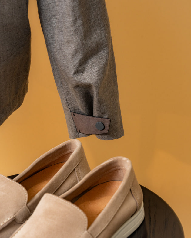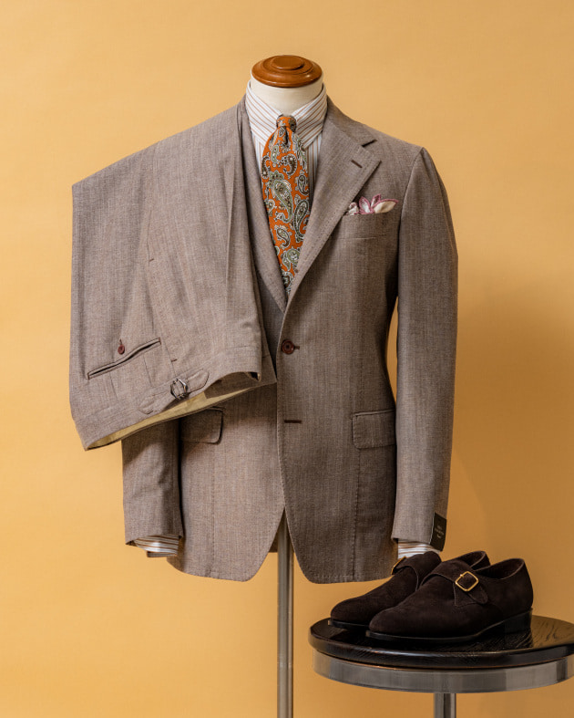 これまで展開してきたベージュよりもトーンが濃く、非常に洒落たカラーリングで軽い生地感のため重たく見えず、春夏にも最適。