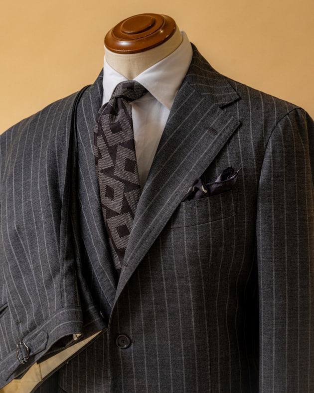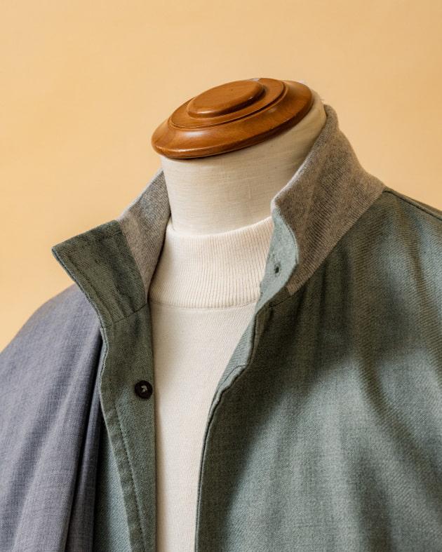 襟型は<FORTELA(フォルテラ)>で展開していたモデルをベースにしており、ジャケットとの収まりがより良くなっています。