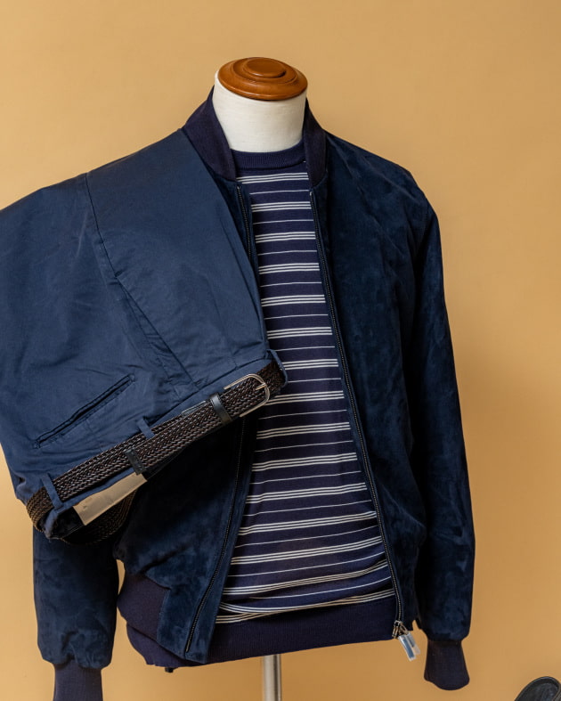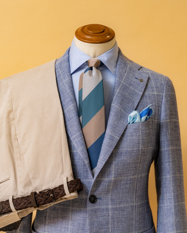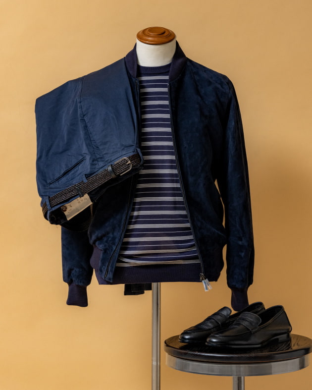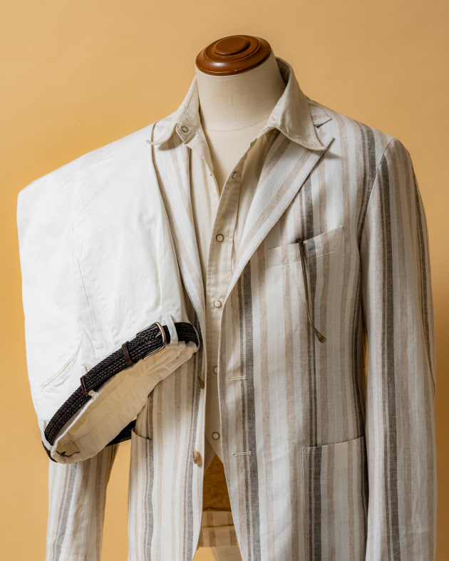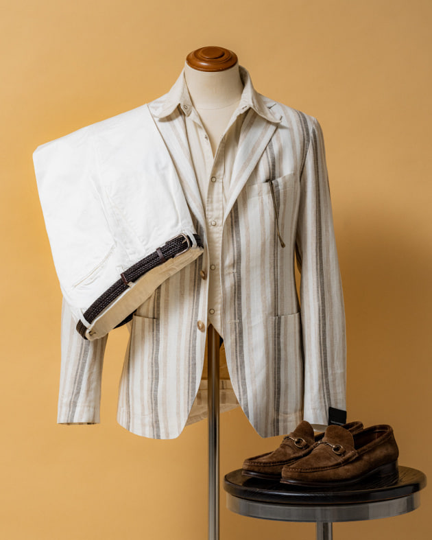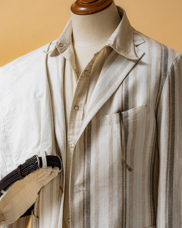 無地の定番色はもちろん、明るいカラーや趣味性の高いストライプなど<Massimo d’Augusto>らしい色柄も揃い、夏の装いを豊かにしてくれます。