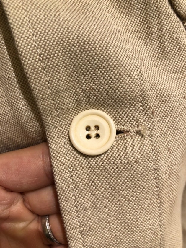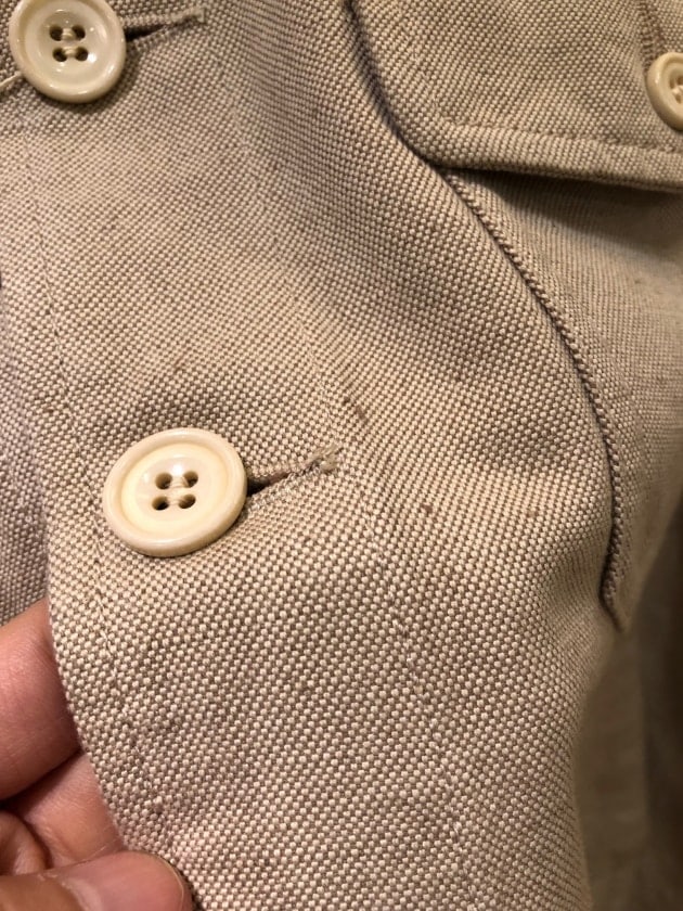ベージュに関しては当時は動物の骨で作るのが主流だった事から、日本で奈良にしかない動物の骨からボタンを作成する所に依頼したホーンボタンが付属致します。