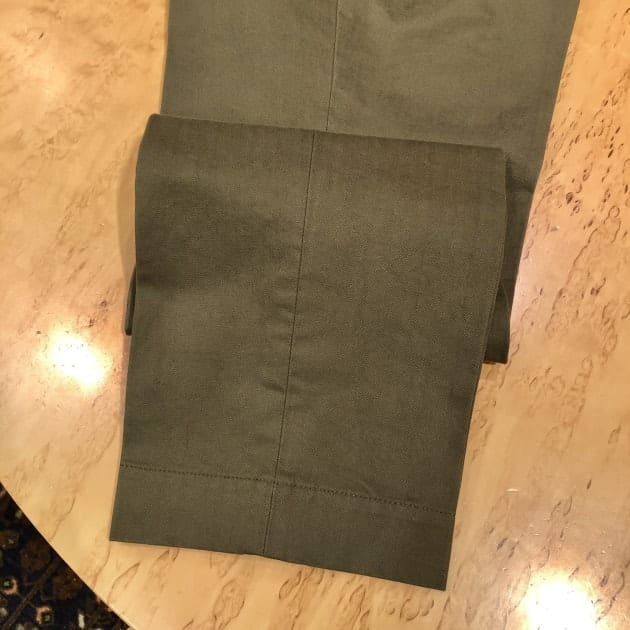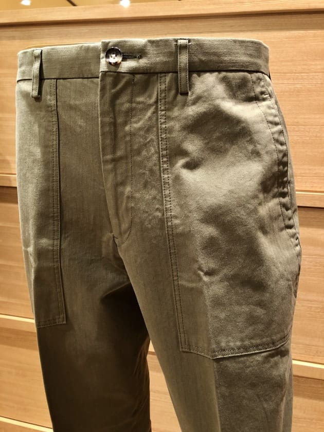 前回の21秋冬商品を対象としたオーダー会では前期型のM47カーゴパンツをベースにメリノウールとリネンで仕上げた独特な素材を採用したパンツを注文。