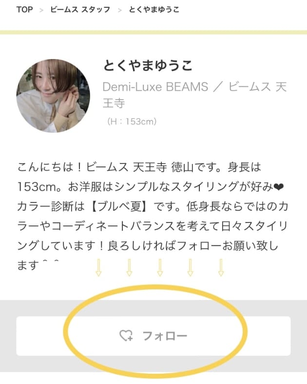 フォローしたスタッフが登場し、チェックしやすくなりますよ~◎