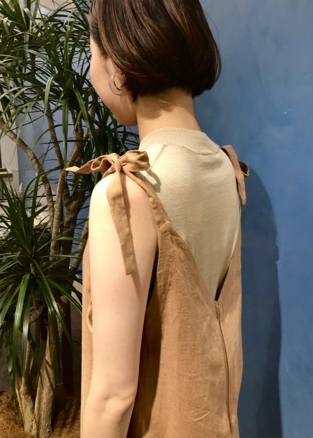 ボーイッシュになりがちなジャンプスーツも、リネンで優しい印象に。