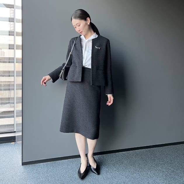 ①トリアセカラーレスジャケット×スカート