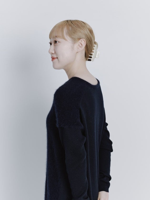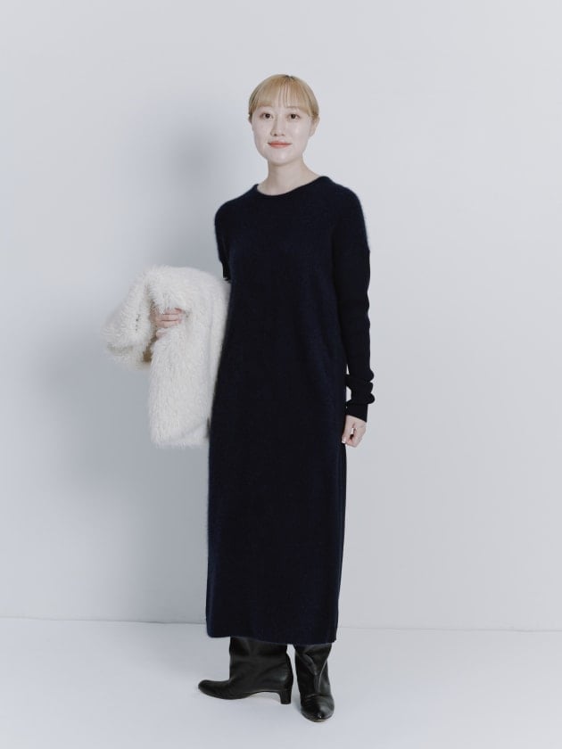 前身頃はふわふわのフラッフィ、後ろ身頃はリブになっており、ニットなのに着痩せする優れものです♩