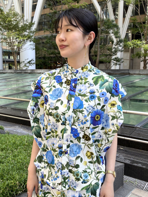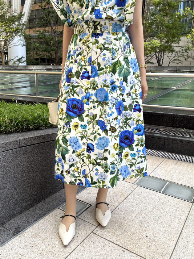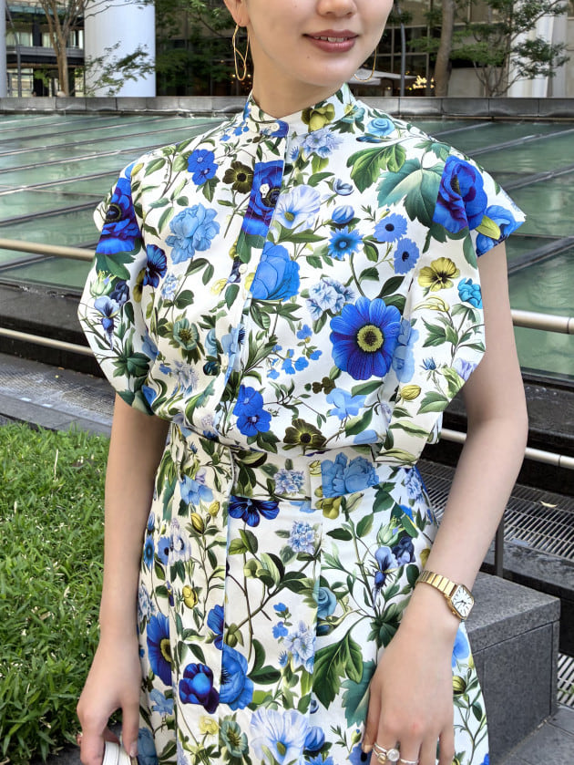 アール・ヌーヴォーを思わせる曲線を描いた花柄のワンピース。