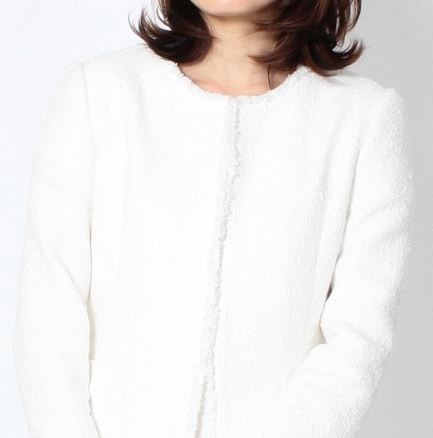完全別注で作成したツイードに、フリンジを施した上品なジャケットです。