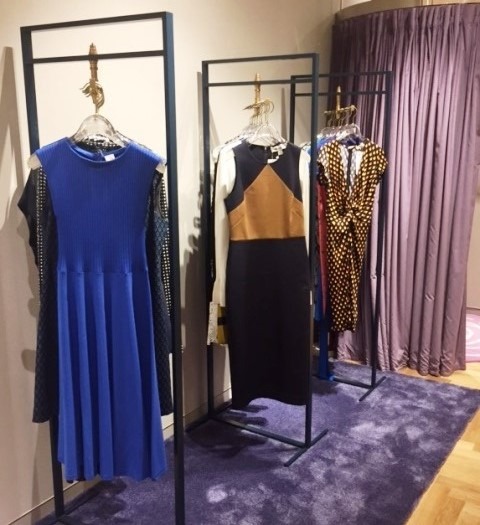 さらに入ると、このようなパープルを基調としたラグジュアリーなドレスコーナーがございます。思わず気分が高揚しそうなカラーやプリントものが充実です。「ビームス ハウス ウィメン 銀座」でしか取り扱いのない特別なアイテムや、オーダー会などのイベントも充実予定です。