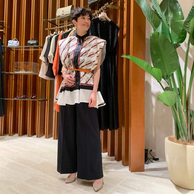 モノトーンに合わせてもジャケットを入れて頂くだけでお顔周りも明るくなります。