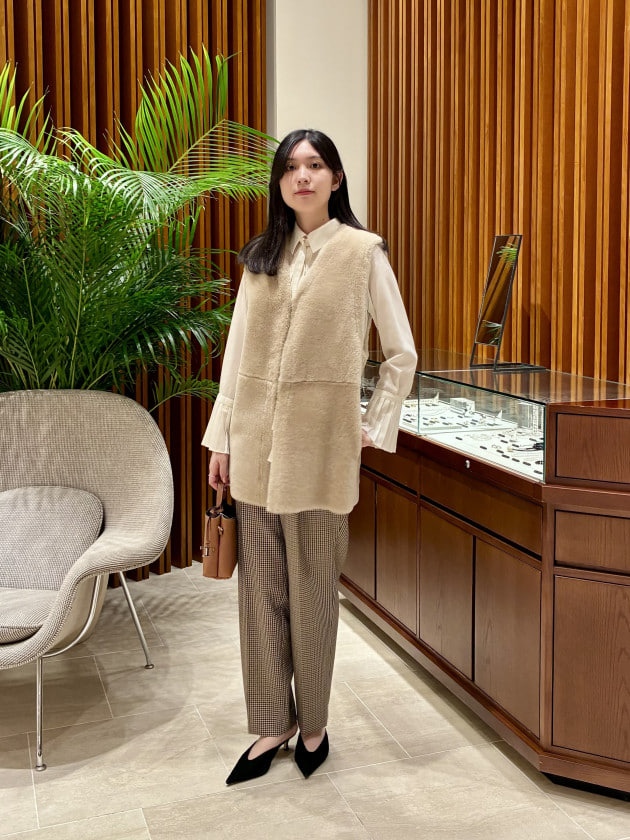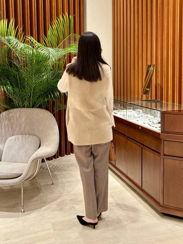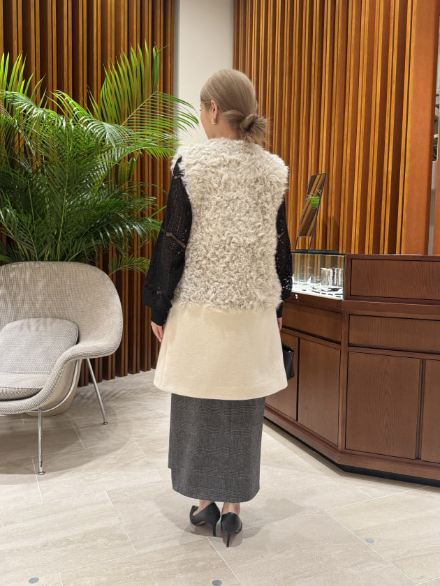 後ろは毛足の短いムートンなのでボリュームが出過ぎず、スッキリとした印象に。