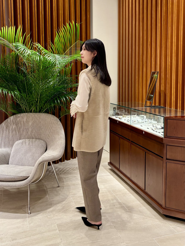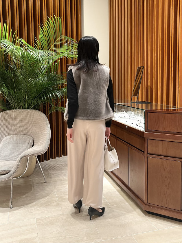 毛足の短い素材でボリュームが出過ぎないのがポイントです。