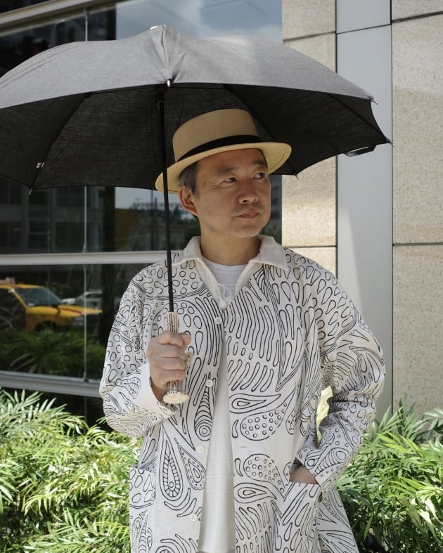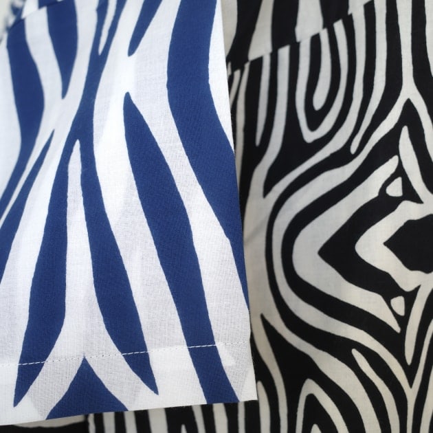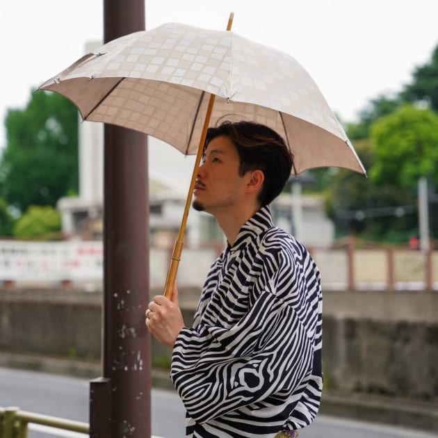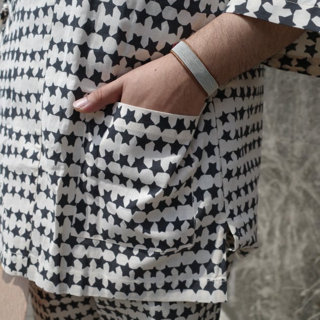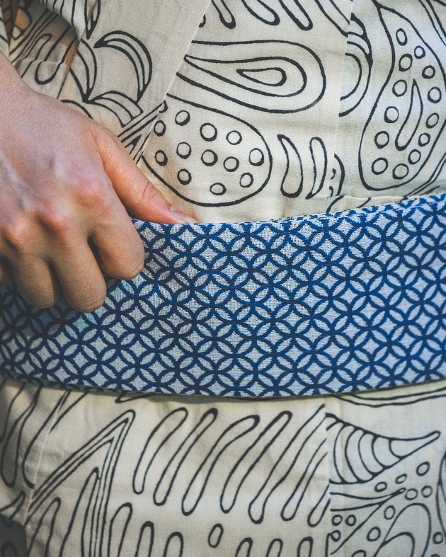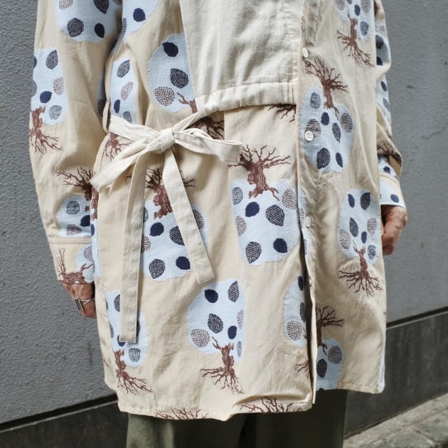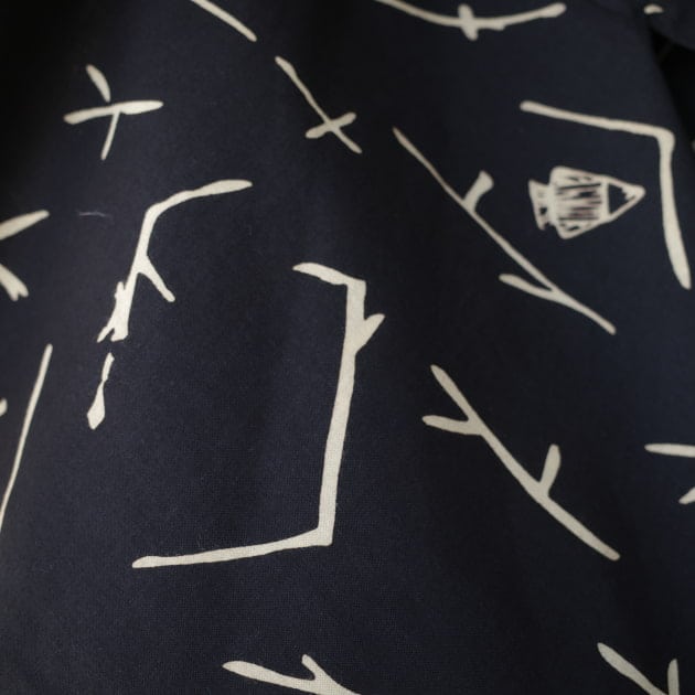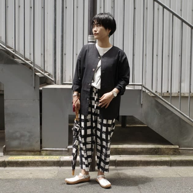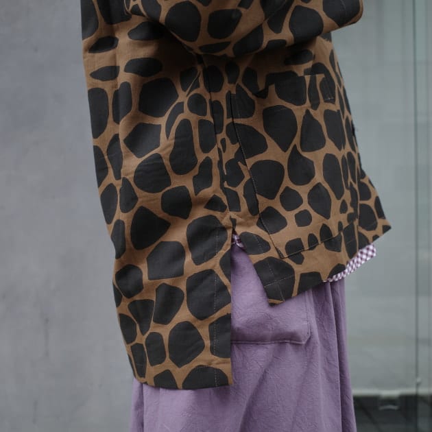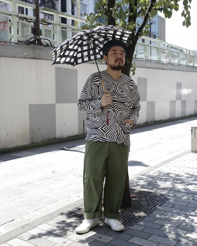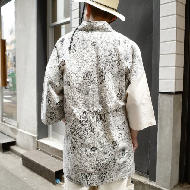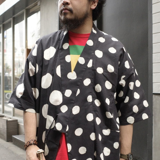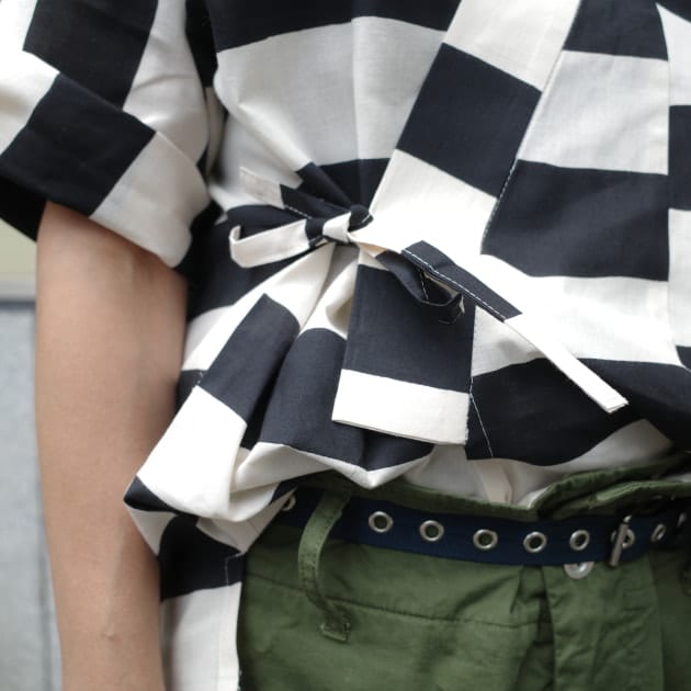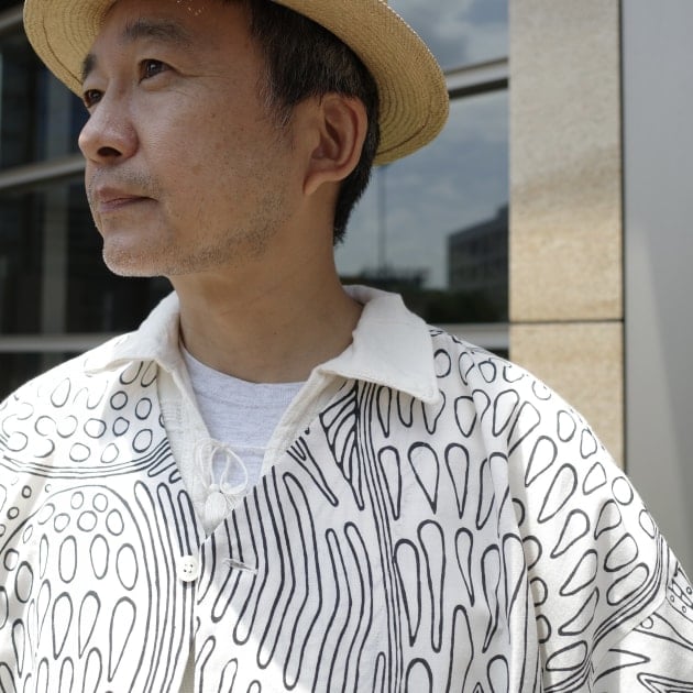 甚平は単一でも楽しんでいただけるように別々のアイテムとしてご用意しているので、こういった柄物のシャツとの組み合わせもお試しいただきたいです。