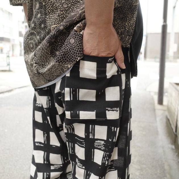 同じパンツですと甚平の組下、“BEE”がありますが、少し丈が短くなり角張った形に。
