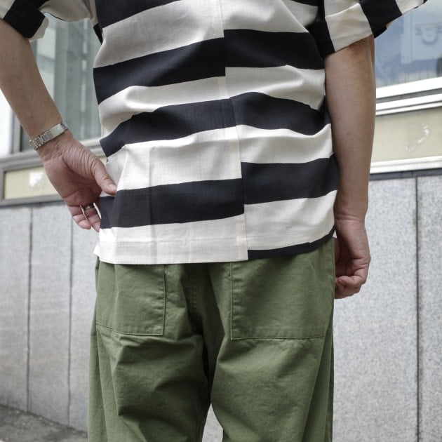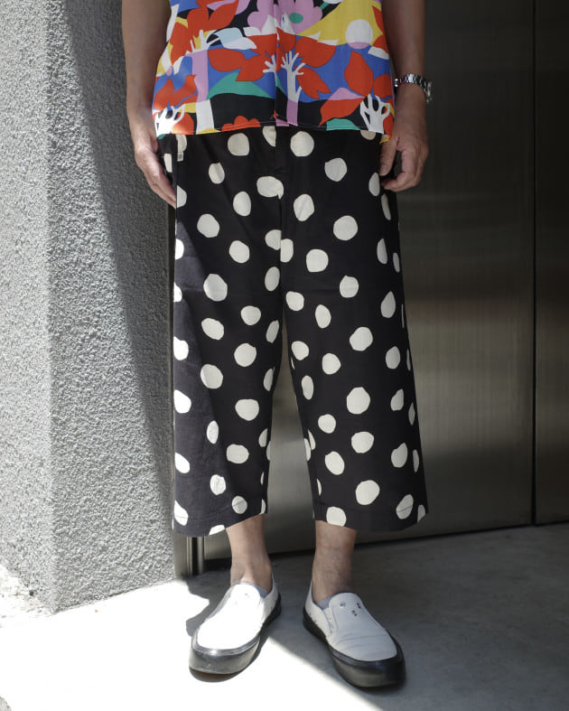 こちらも登場以来人気のアイテムとなったステテコがモチーフのパンツ。ゆとりあるヒップ周りからややテーパーが入る形で、軽く涼しい穿き心地が魅力。