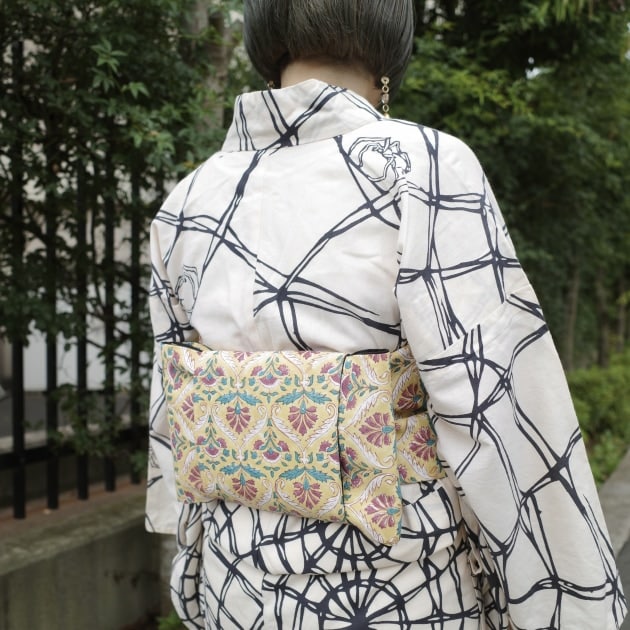 片側に大きく入ったスリットと、浴衣を着る機会が減ってしまったここ数年で生まれたデザインです。