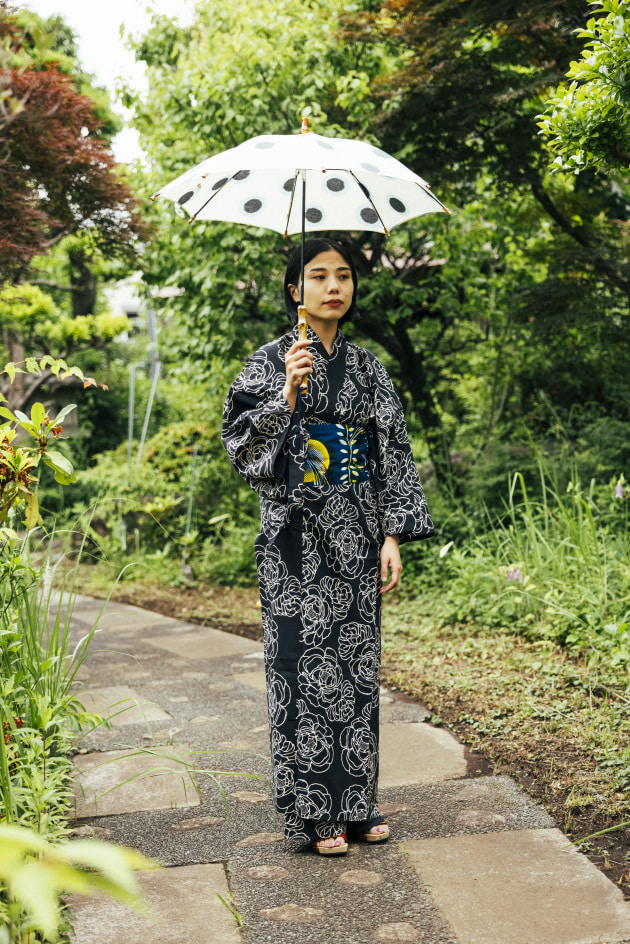 <傳tutaee(ツタエ)>の浴衣と“米沢織”の帯をあわせて生まれる、新たな科学反応をお楽しみ頂ければと。