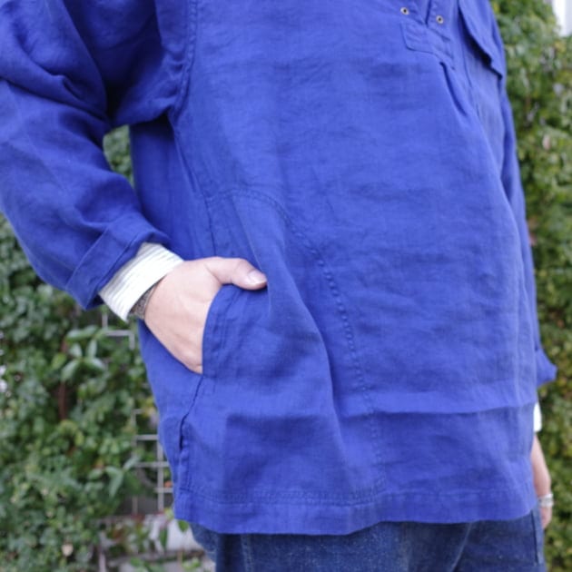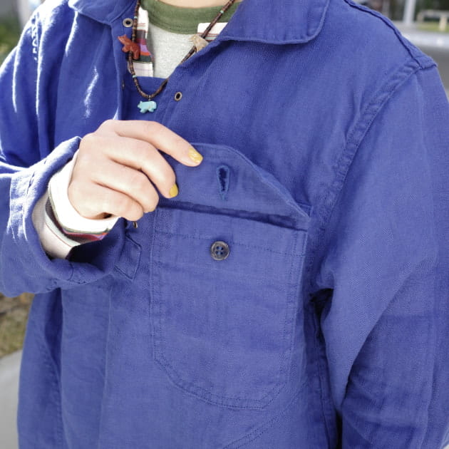 オリジナルはグリーンデニムが特徴的ですが、<orSlow>によるバックサテン生地を採用。同じ素材を用いた<orSlow>のアイテムにロングセラーのファティーグパンツがありますが、ボリュームあるシルエットや裾の切り替えなどのディテールで、また違った着こなしが楽しめます。