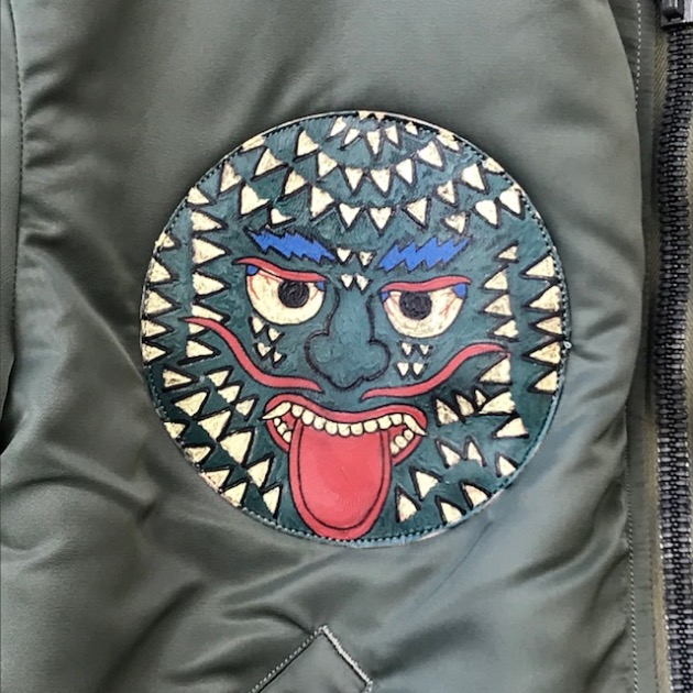 胸のワッペンは高知のムカデの連凧をモチーフに、加賀友禅の職人が手描きで彩色を施したもの。これは他では手に入りませんね。サイズにもかなり限りがある状況になっておりますので、どうぞお早めに。