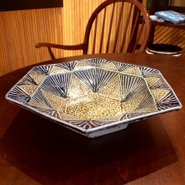 祖父である濱田庄司の流し掛けの大皿でも重ね掛けが難しい釉薬ではこの手法が取られていたそう。大皿となると時間の掛かる仕事ですが、ダイナミックな流し掛けにも細やかな仕事が潜んでいたと思うと面白いです。