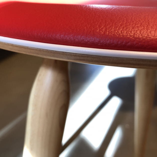 やや硬めのクッションとコの字型の脚が特徴で、サイドフレームだけでなくクッションに覆われた背と座にも成形合板を用いています。