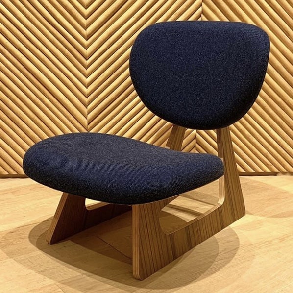 ソリ脚も特徴の一つで、畳やラグの上にレイアウトしても傷まないようにとの配慮から。ある歌舞伎役者から「和室に溶け込む寛げる椅子を」と要望を受けたことが始まりというのも有名な話でしょう。デザインとしても印象的ですね。