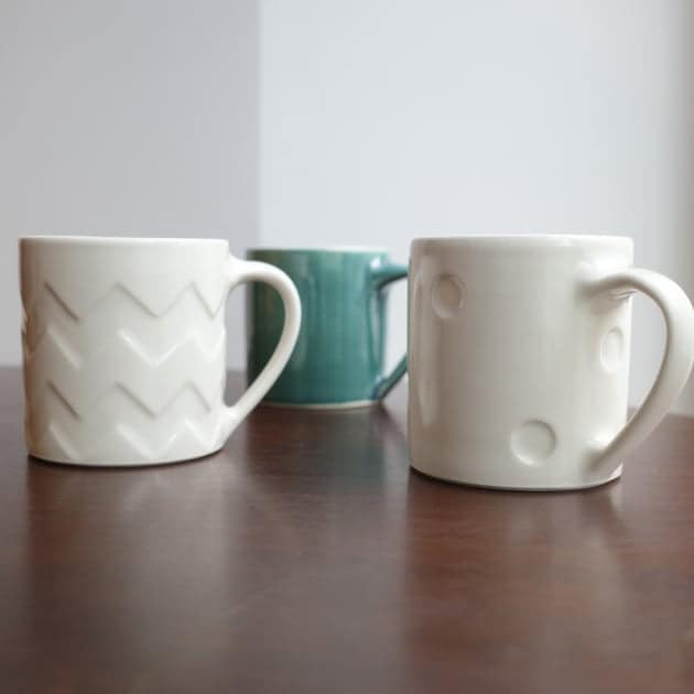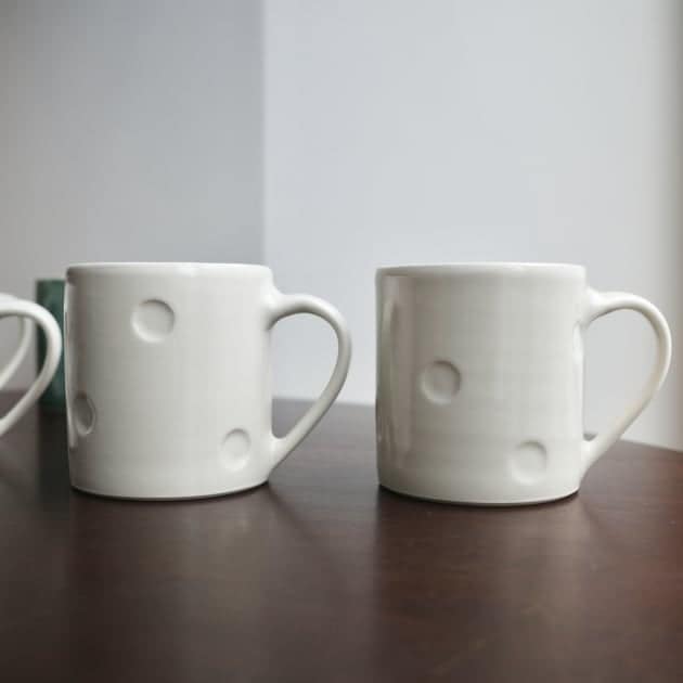 右手にあるマグの方が深く彫られていますね。こちらも彫りの深さによって印象が変わります。