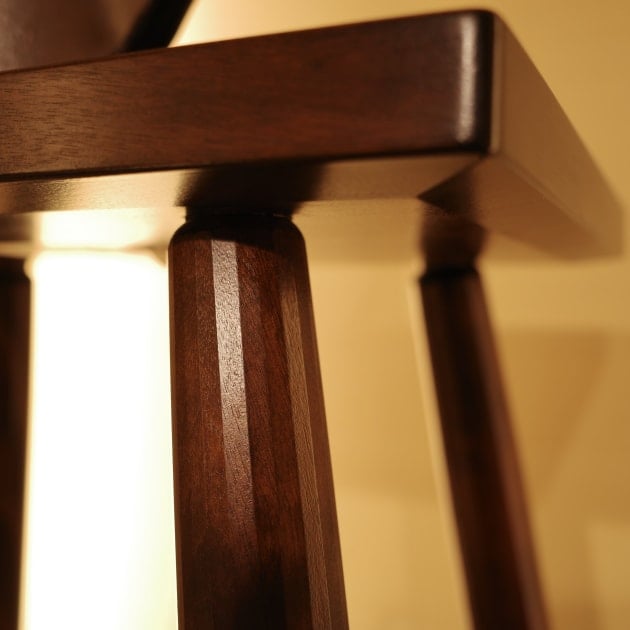 脚板には雑誌や文庫箱など置いても良いですよね。丁寧に面取りされ、テーパーした脚も美しいです。