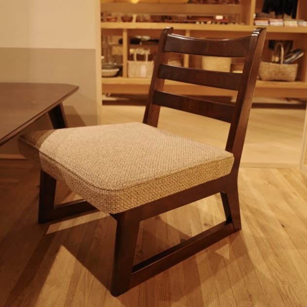 座卓と同時期に特注した低座椅子は、木部のBEAMSカラーと布張りの生地を変更しています。