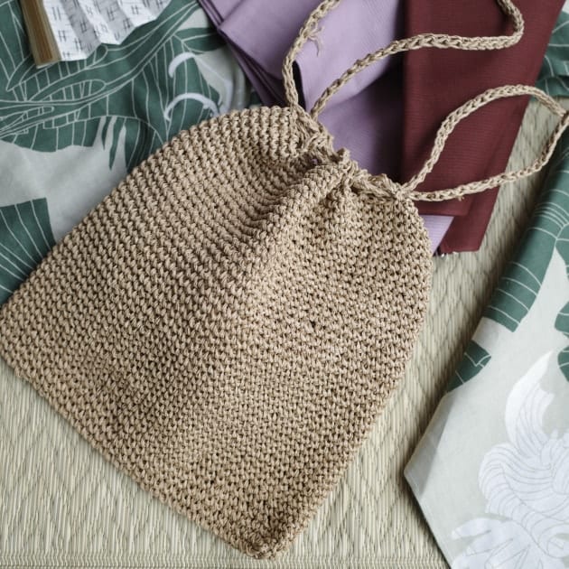 <Babaghuri>のエレファントグラス素材の透かし編みかごも涼しげでおすすめですよ。