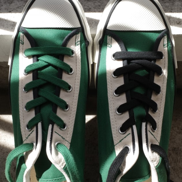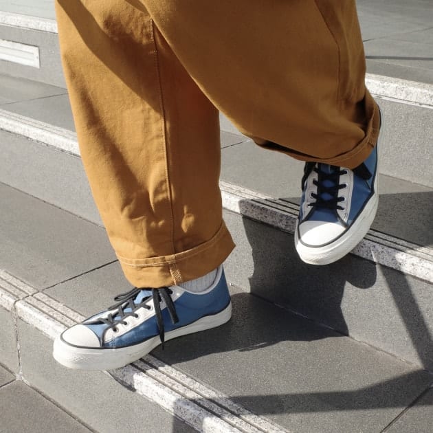 国内でもごく僅かな工場でしか生産することのできない昔ながらのヴァルカナイズ製法で作られるスニーカーは、しっかりと返る粘りと柔軟さがあります。