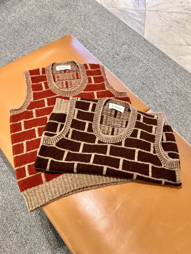 私の頭の中には<Jamieson's Knitwear>のニットはファッションとしてもそうですが、様々なアーティストや俳優が着用している、カルチャー的な側面も大きくありまして、どこの国にもあるこのレンガ柄のニットに、私が日本のあれやこれやをイメージしたように、着用する人が、思い思いの絵画や街並みをイメージしてくれるんじゃないかなと想像を膨らませていました。
