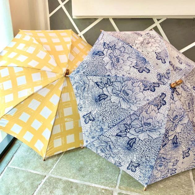 傳の日傘は、静岡県の浜松注染を用いたもの。