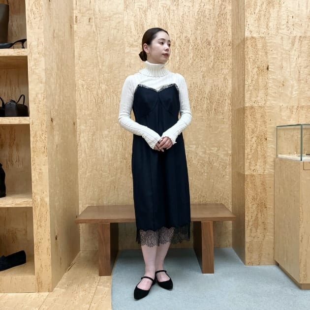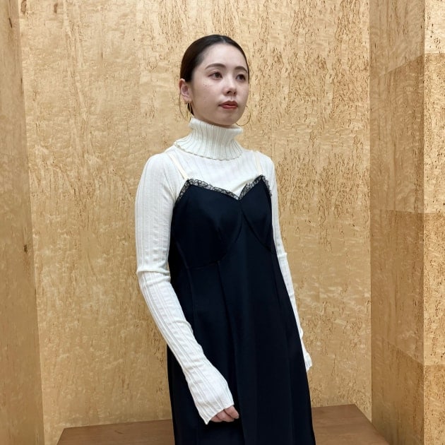 シンプルで上品なデザインは、一枚で着用はもちろん、ジャケットとコーディネートをするのもお勧めです。