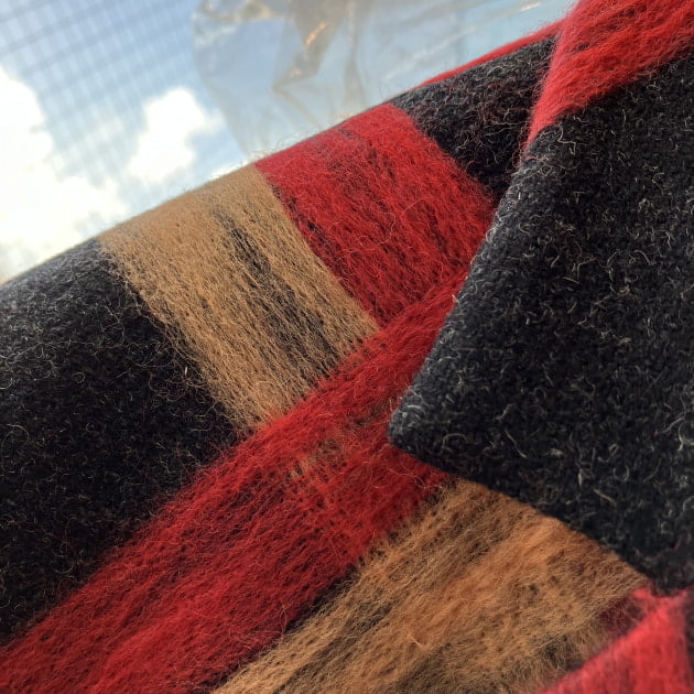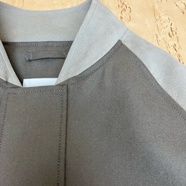 ボディには滑らかなメルトンウール、袖や裾のペプラム部分は異素材を使用し、立体的なシルエットを実現。丸みのあるフェミニンなフォルム、パターンで美しいラインを演出します。