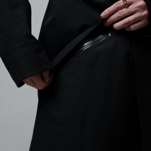 【Belfry Jacket】撥水加工を施したウール混紡素材を使用し、スタイルと機能性を兼ね備えた一着。アシンメトリーファスナーが風の侵入を防ぎつつ、デザインのアクセントに。パンツスタイルはもちろん、女性らしいスカートやワンピースとコーディネートすると、程よい抜け感が生まれます。ブーツなど、足元にアクセントをプラスすると、季節感のあるスタイリングをお楽しみいただけます。