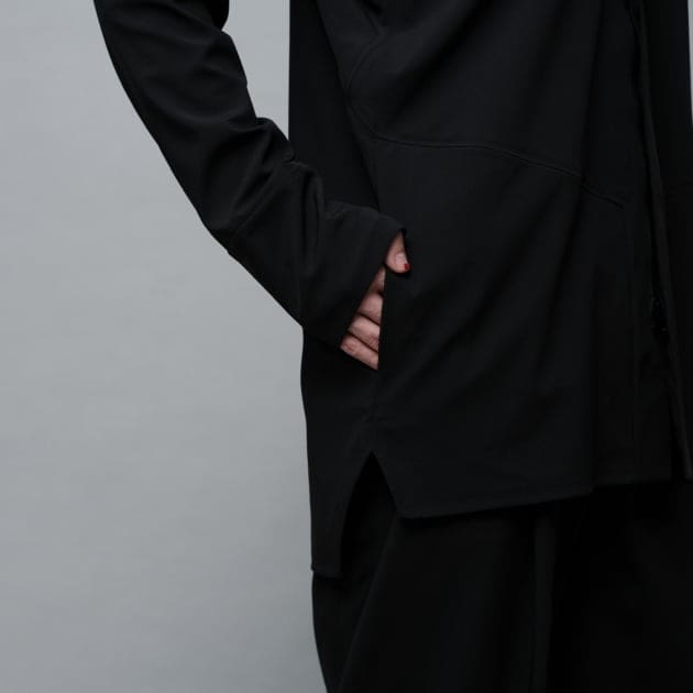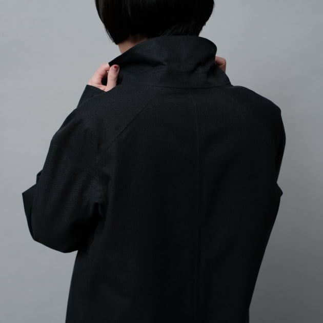 袖はスナップボタン付きのベンチレーションを配し、体温調整がしやすいディティール。襟は気候に応じてアレンジが可能なコンバーチブルカラー、都市生活に寄り添う、実用性と洗練が共存するジャケットです。